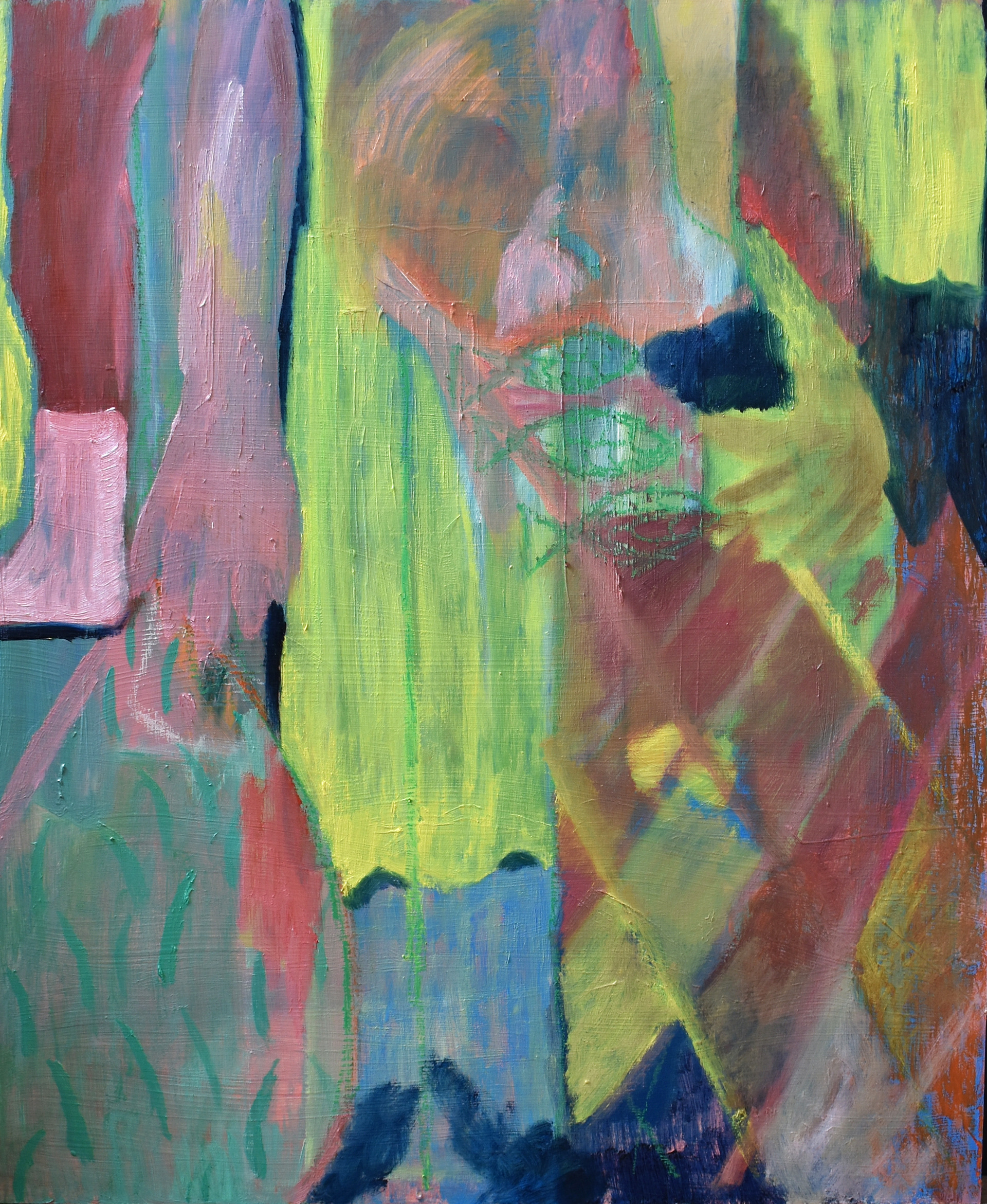 'fisherman vest', 2023, oil and pastel on wood panel