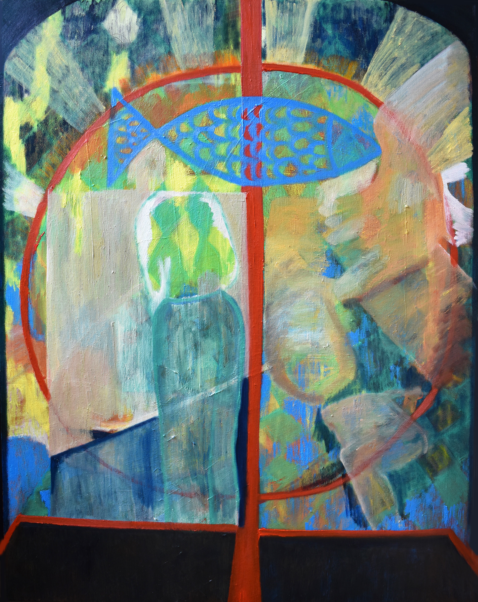 'Fish at a party', oil on canvas, 2023