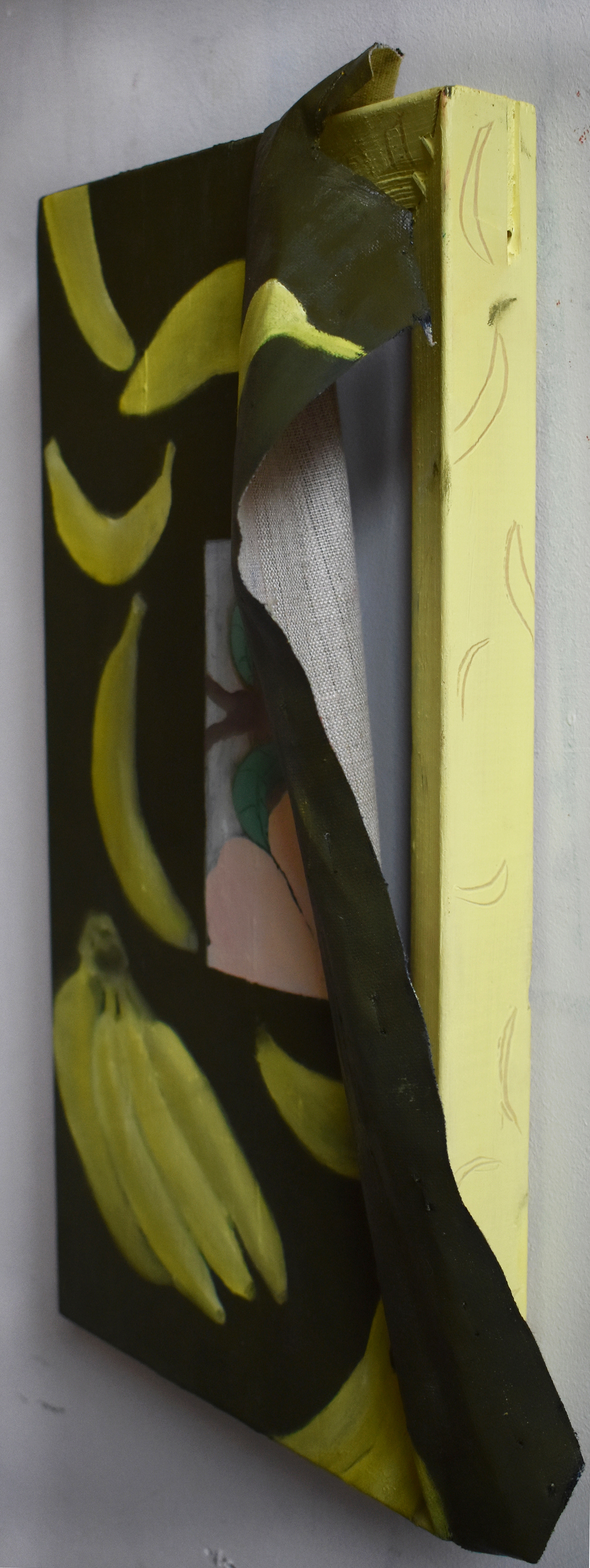 'I'm Spilling Out!', oil on canvas with fabric, 200cmx70cm, 2020.